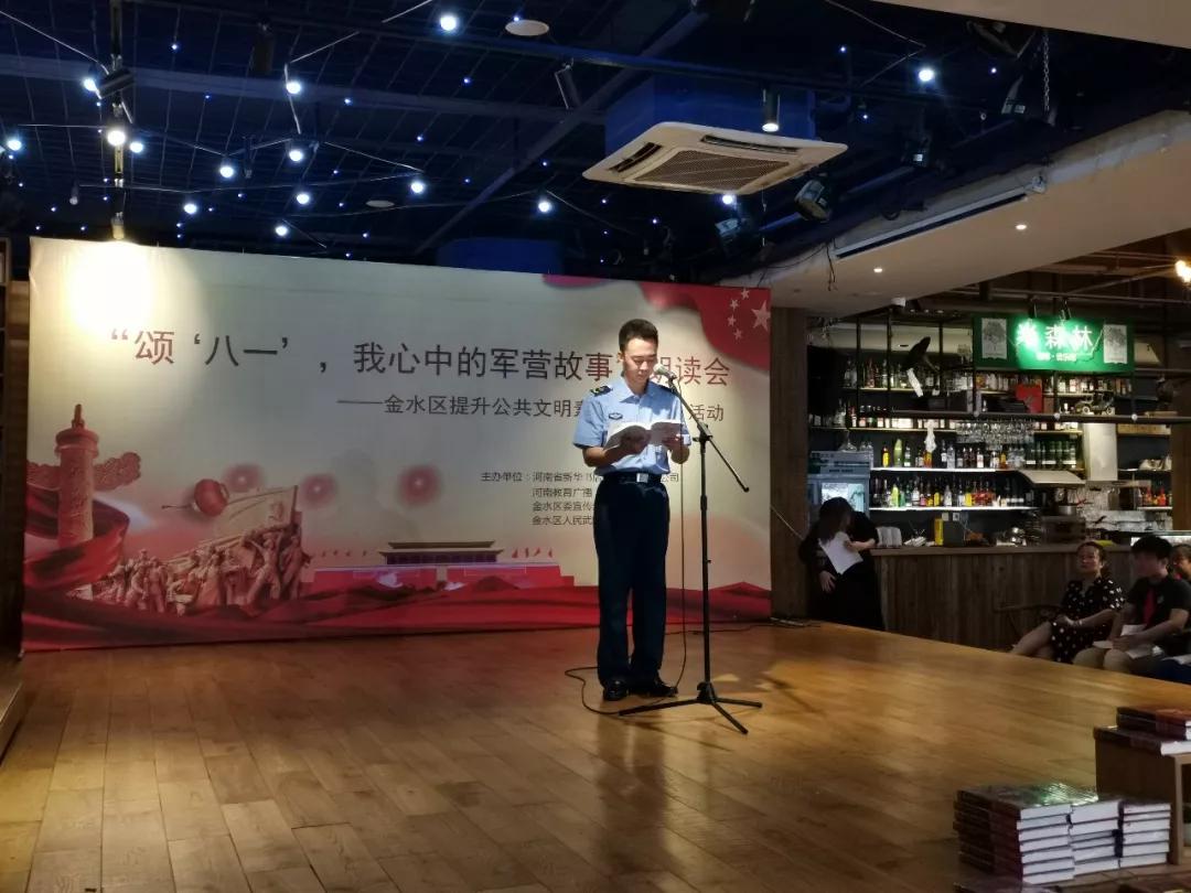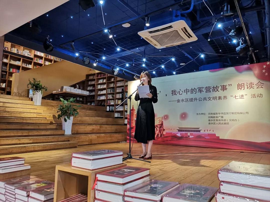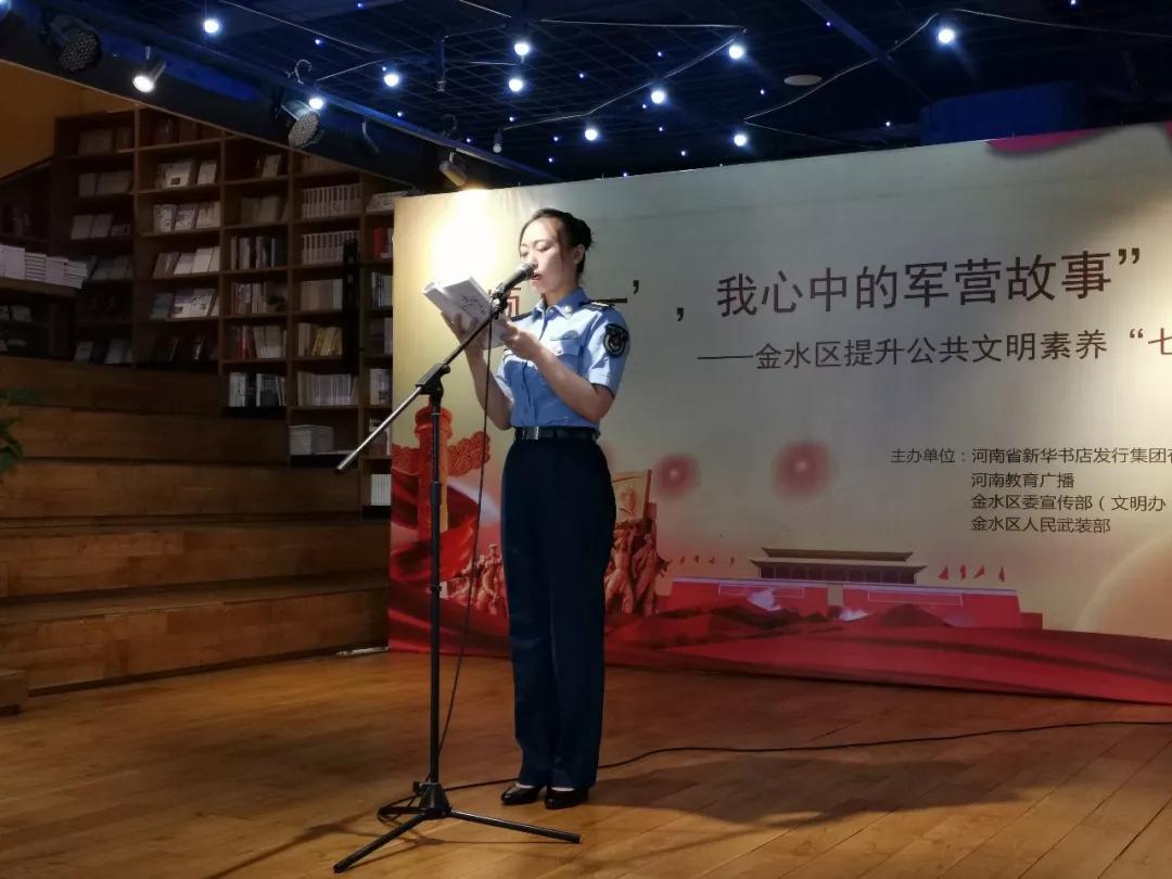 8月1日上午,為慶祝中國(guó)人民解放軍成立92周年,更好展現(xiàn)當(dāng)代人民子弟兵卓越風(fēng)采,講述軍民相擁的動(dòng)人故事,推進(jìn)提升公共文明素養(yǎng)“七進(jìn)”工作,河南省新華書店發(fā)行集團(tuán)有限公司、河南教育廣播、金水區(qū)委宣傳部(文明辦)、金水區(qū)人民武裝部共同舉辦“頌‘八一’,我心中的軍營(yíng)故事”朗讀會(huì),暨金水區(qū)提升公共文明素養(yǎng)“七進(jìn)”系列活動(dòng)在中原圖書大廈回聲館舞臺(tái)舉行。