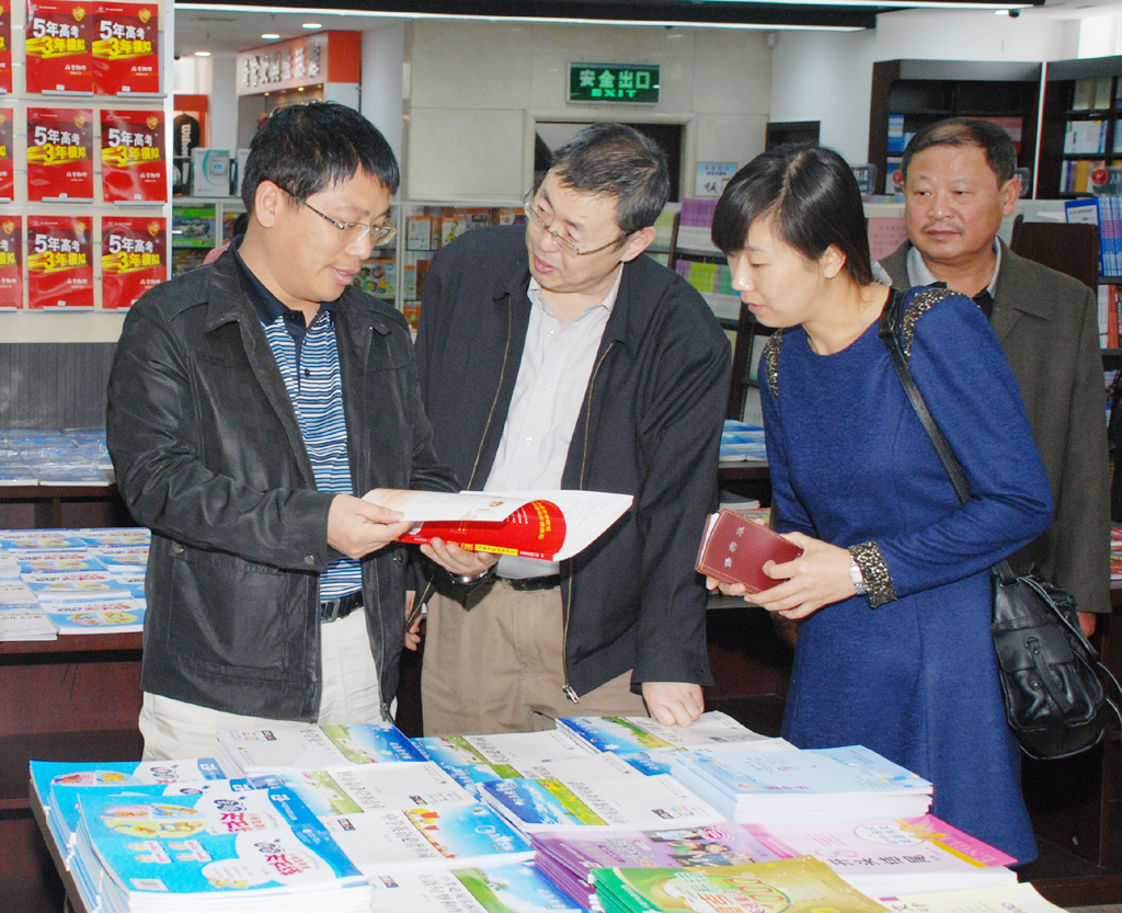 4月25日上午,新聞出版總署出版產(chǎn)業(yè)發(fā)展司副司長張亮一行,在河南省新聞出版局副局長王新會等局領導陪同下,先后來到發(fā)行集團公司旗下的新華天潤連鎖樣本大廳、中原圖書大廈,對2012年春季中小學教輔材料發(fā)行情況進行了調研。中原出版?zhèn)髅郊瘓F副總裁、發(fā)行集團公司董事長李永臻,發(fā)行集團公司總經(jīng)理林疆燕、黨委書記李向午等領導班子成員陪同視察。