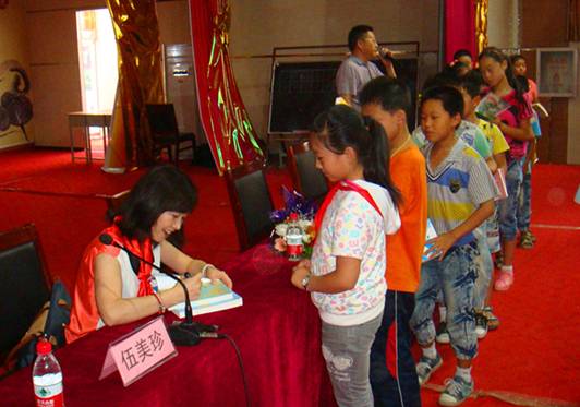 伍美珍被稱為“陽光姐姐”,她曾是“陽光姐姐熱線”主持人,專為小讀者排憂解難。自2000年起,她在內(nèi)地和港臺三地共出版了70余部少兒題材的小說和報(bào)告文學(xué)作品,曾獲文化部“蒲公英少兒讀物獎(jiǎng)”及新聞出版總署“全國優(yōu)秀少兒圖書獎(jiǎng)”“冰心兒童圖書獎(jiǎng)”等。為了開展好本次活動(dòng),切實(shí)通過名家效應(yīng)提升新華品牌,拉動(dòng)一般書銷售,發(fā)行集團(tuán)公司非常重視本次巡講活動(dòng)的方案策劃、行程安排、具體落實(shí)等方面工作,早在6月份就已經(jīng)推出了方案細(xì)則,后又經(jīng)過多次與基層書店、出版社以及伍美珍本人的溝通商量,最終保證了伍美珍校園巡講簽售活動(dòng)的圓滿舉辦。
