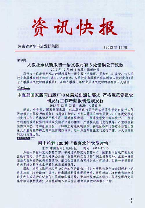 來源:河南省新華書店發(fā)行集團有限公司  作者:河南省新華書店發(fā)行集團有限公司  發(fā)布時間:2013/12/13 16:19:39  閱讀次數(shù):6126