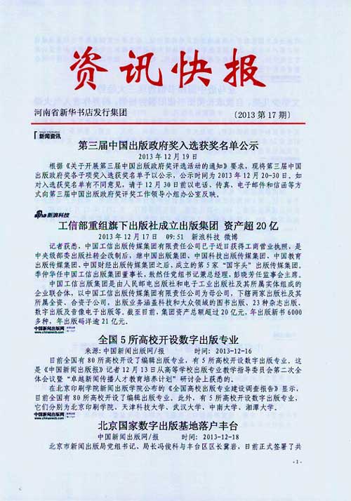 來源:河南省新華書店發(fā)行集團(tuán)有限公司  作者:河南省新華書店發(fā)行集團(tuán)有限公司  發(fā)布時間:2013/12/23 12:32:11  閱讀次數(shù):6521